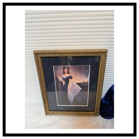 Design Plus Gallery presents Scarletts Portrait Doll from the Porcelain Mint. The doll is a near perfect replica to the portrait painting of Scarlett OHara in the movie Gone with the Wind in which Vivien Leigh played the beloved character. The doll comes with a miniature portrait of Vivien as Scarlett from the film, a wood column, a stand for the doll and its original box with paper. The doll is fully dressed with blue velvet gown, impeccable lace shawl, golden earrings, gold band, and a pearl tiara. The porcelain doll has hand painted features to the face with the limited edition number on her back of 2535. It is in good condition with minimal wear for its vintage age and very few missing pearls from the tiara.