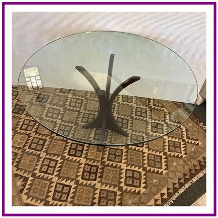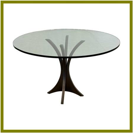 Custom Round Iron Pedestal + Glass Dining Table. Custom Round Iron Pedestal + Glass Dining Table. Original Price: $1,300