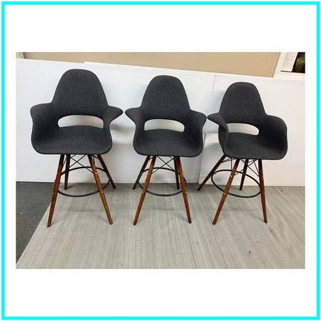 Dot & Bo Tete-a-tete Gray Flannel Bar Stools, Set Of Three. Dot & Bo Tete-a-Tete Gray Flannel Bar Stools, Set of Three