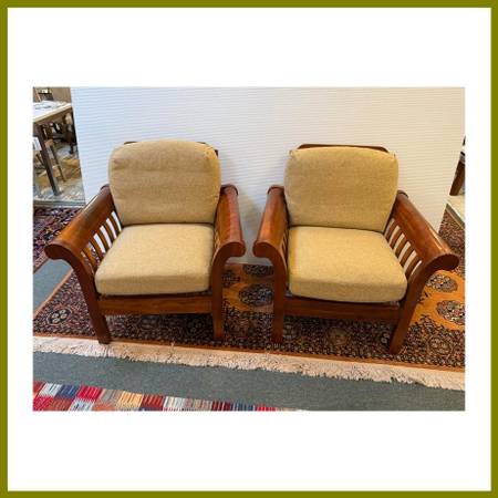 Hickory Chair Company Wood Roll Arm Chairs, A Pair. Hickory Chair Company Wood Roll Arm Chairs, a Pair