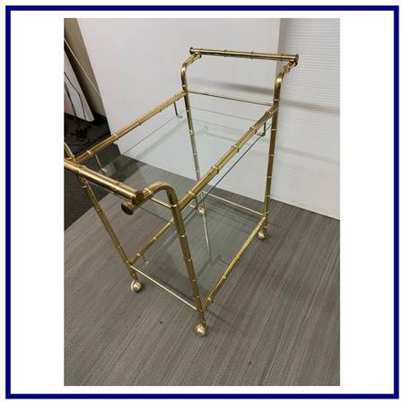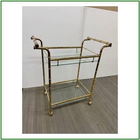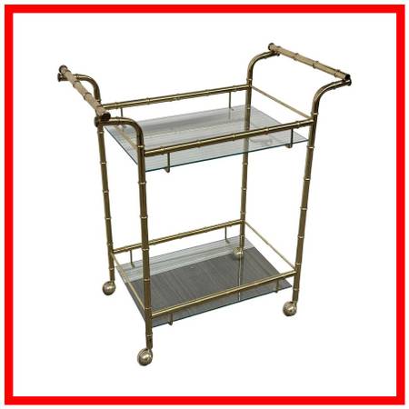 Hollywood Regency Double Handle Brass Bar Cart. Hollywood Regency Double Handle Brass Bar Cart