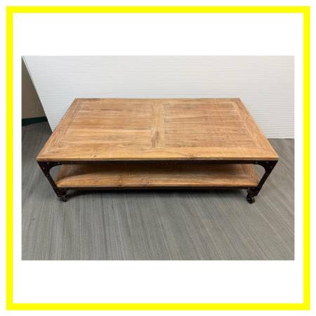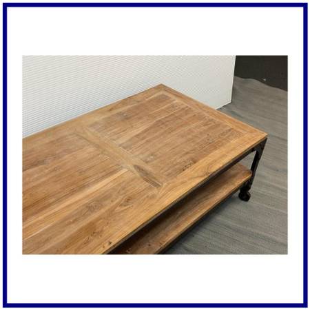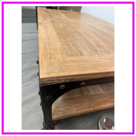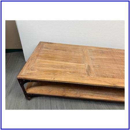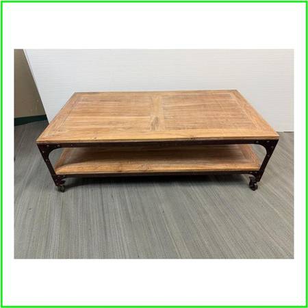 Industrial Riveted Iron With Wooden Surfaces Coffee Table On Casters. Industrial Riveted Iron With Wooden Surfaces Coffee Table on Casters