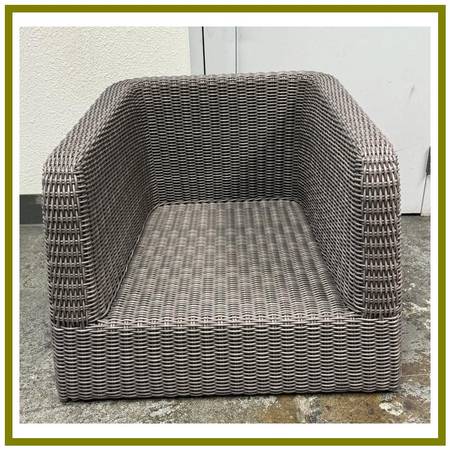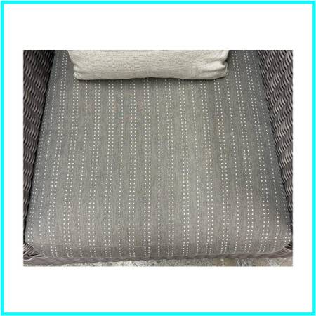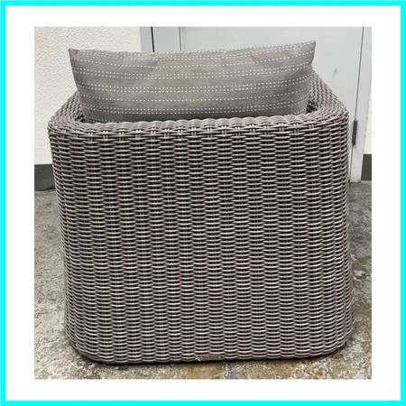 Design Plus Gallery presents the Zeya Collection Lounge Chairs from JANUS et Cie. The Zeya collection takes inspiration from vintage European design and updates it with an American spirit with generous proportions. The rattan is woven with gracefully rounded arms to soften otherwise angled silhouettes. Zeya is handwoven from their proprietary JANUSfiber in their Acacia finish. Two loose cushions with matching pattern for seat and back, with one solid throw pillow. There is a brand plate on the chair. Is in good condition for its usage.