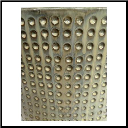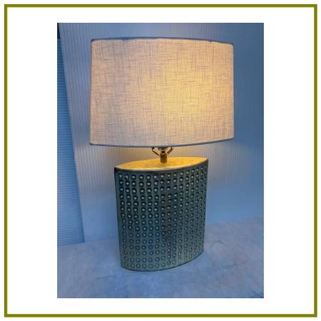 Design Plus Gallery presents a Japanese Inspired Table Lamp from Kenzie Tanner. Likely a vintage piece, this unique table lamp will have you reaching out to touch it at every chance. The texture is so fun as it recessed with repeating pits from top to bottom. The shape of the body is elliptical as it narrows at the ends and is just a sliver when looking at it from the side. It comes with a thin depth white linen shade that matches it well. It shows some patina to the brass and general wear that is consistent to what we believe to be vintage age.