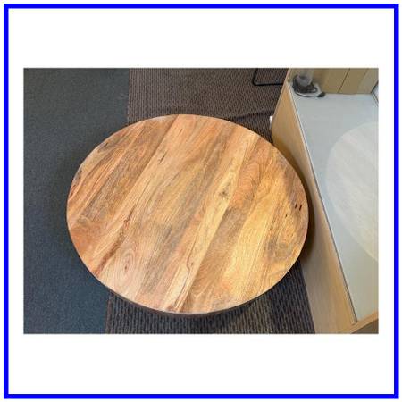 Design Plus Gallery presents the Jensen Coffee Table from McGee Co. The Jensen coffee table has a gentle curves with surrounding wooden slats to create a sturdy table. It is finished with a sensational tobacco wash to bring a touch of nature into your home. It is made from natural materials so each one is unique to others. Visible surface wear is present to the table top, as shown, but overall it is in good condition. Made in India.