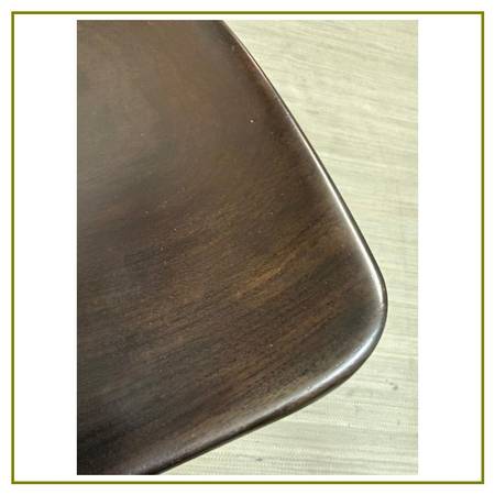 Design Plus Gallery presents a Balboa Bar Stool from Brownstone Furniture. The stool has a driftwood finish over solid teak wood. The dark tone of espresso stain has brass plate kick bar in the front and exposed wood stretchers on the remaining legs. The contoured seat will be comfortable even when sitting for extended periods. It is in good condition with minimal wear for its usage.
