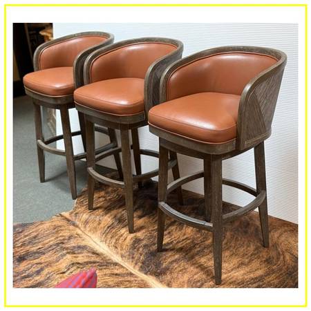 New Palecek Sullivan Swivel Bar Stools, Set Of Three. NEW Palecek Sullivan Swivel Bar Stools, Set of Three. Original Price: $11,850
