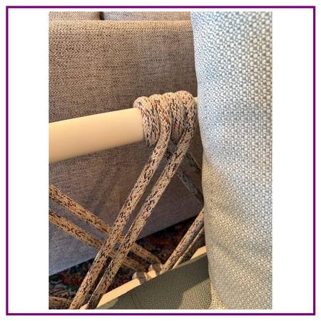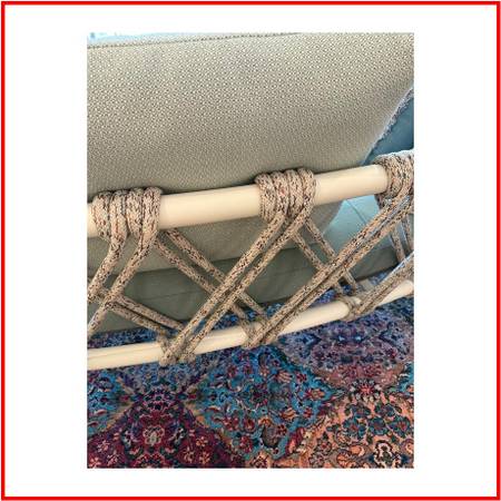 Design Plus Gallery presents a Trampoline Linear Sofa from Cassina. Designed by Patricia Urquiola. Brings playful energy and sculptural poise to the open air. Inspired by the mini trampolines found in the gardens of homes in Greenland, its taut, handwoven seat and back create a light, graphic silhouette that feels both athletic and inviting. The rigorous purity of an AISI 304 stainlesssteel frame anchors the design, while generous polyurethanefoam cushions soften the architecture with effortless comfort. Purposebuilt for outdoor living, the artisanal rope weave in polypropylene and nylon offers texture, transparency, and lasting performance, making a striking statement from terrace to poolside. Was a Showroom Sample. In good condition, visible and minimal wear. Made in Italy.