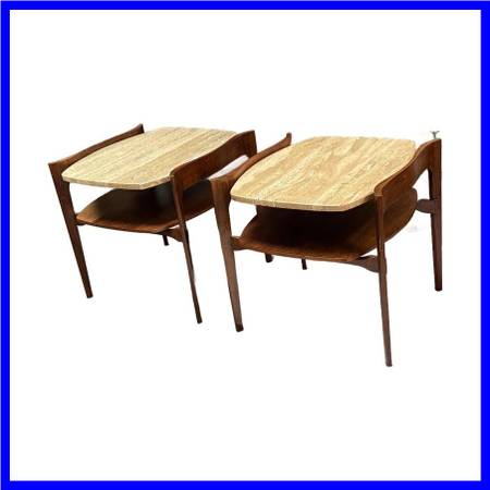 Pair Of Walnut + Travertine End Tables By Bertha Schaefer. Pair of Walnut + Travertine End Tables by Bertha Schaefer. Original Price: $4,995
