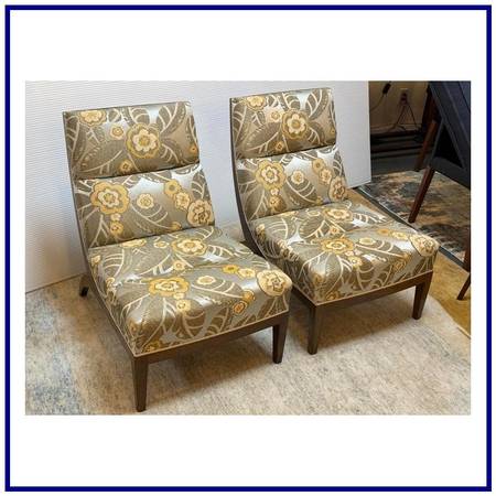 Roman Thomas Custom Avery Silk Jacquard Chairs, Pair. Roman Thomas Custom Avery Silk Jacquard Chairs, Pair. Original Price: $8,000
