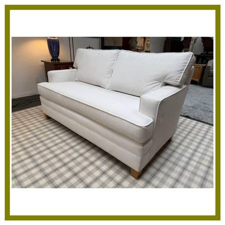 Sunrise Home + Hickory Chair Company White Velvet Loveseat. Sunrise Home + Hickory Chair Company White Velvet Loveseat. Original Price: $4,000