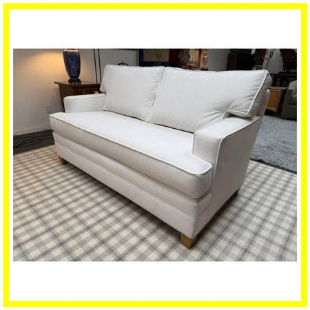 Sunrise Home + Hickory Chair Company White Velvet Loveseat. Sunrise Home + Hickory Chair Company White Velvet Loveseat. Original Price: $4,000