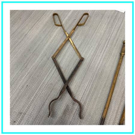 Vintage Colonial Brass Four Piece Fireplace Tool Set. Vintage Colonial Brass Four Piece Fireplace Tool Set
