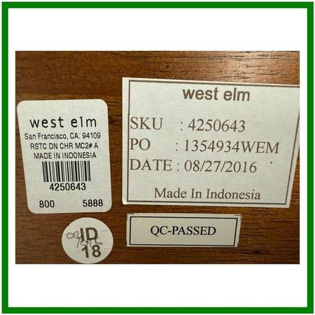 West Elm Rustic Side Dining Chairs, Set Of Six. West Elm Rustic Side Dining Chairs, Set of Six. Original Price: $1,700
