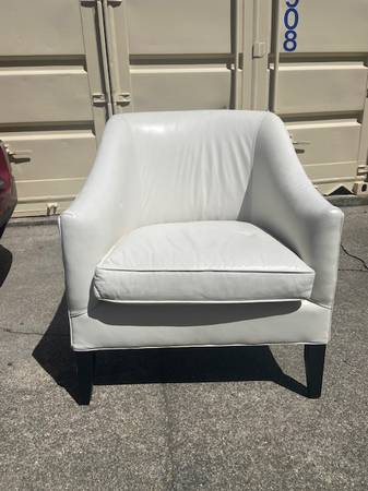 Beautiful condition in ivory. Great in a lounge or bedroom setting. Comfortable. Leather. Period piece persona. Relatively unused as used for staging. Let me know if you have questions or would like...