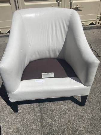 Crate and Barrel genuine leather barrel chair in creme-white -...