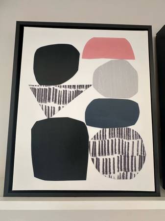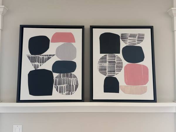 Set of two frames art pieces. Each one is 20” x 24”. Hooks for hanging on the back. Must buy together. Pickup in Tiburon.