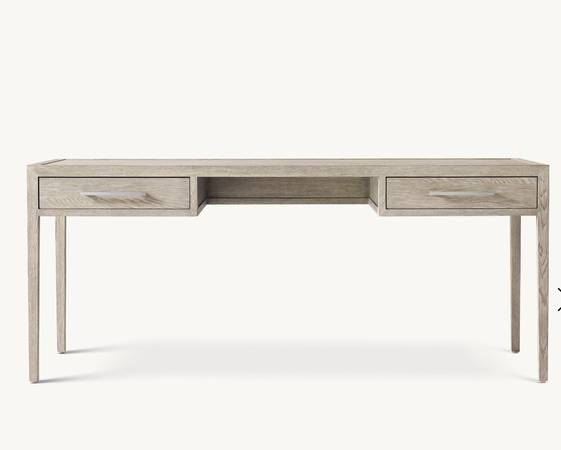 I’m offering a beautiful light oak desk from RH’s French Contemporary collection (designed by the Van Thiels). It’s crafted of American white oak, sand-blasted for a subtle textured finish, showcasing clean classical forms. You’re getting a premium RH piece at a fraction of full retail, without waiting on lead times or delivery fees,