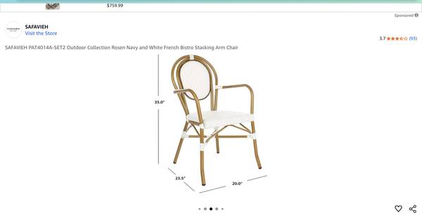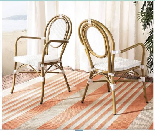 SAVAFIEH - Set of 2 Bistro Chairs in white and beige. These are brand new and in the box and retails for $325.00 The size of these chairs are 20 x 23.5 x 35 Each chair is $50. Please text or email...