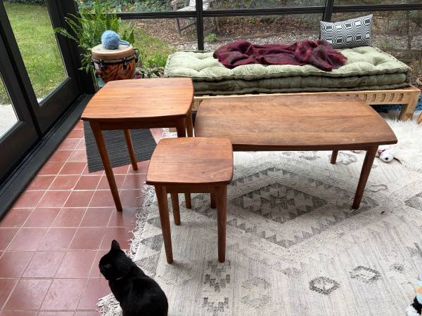 300 or best offer. Solid walnut, hand-made. Coffee table 38x17.5, side table 23hx21, side table 20hx13.5