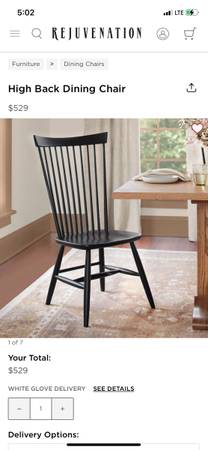 Used in great condition. Mild wear to top edge of back and some scuffs to legs. Setting as a set of 4 chairs. Very solid and comfortable to sit in Width: 23" Height: 41-1/2" Depth: 19" Seat Depth:...