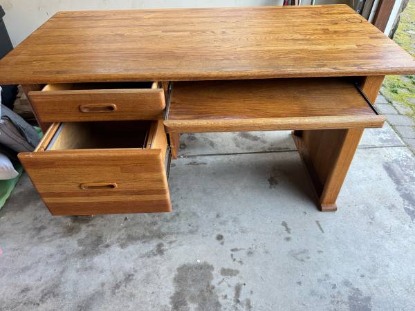 Oak desk, in good condition; Drawers open / close; surface has water spots in 2 places; 60” length, 30” depth, 30” ht. In Forest Knolls; $20 - Cash only