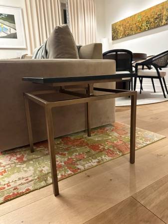 Side table of black marble and brass. 18"w x 18" l x 18 1/2" h Asking $70/or best offer Email if interested and include your cell number for texting
