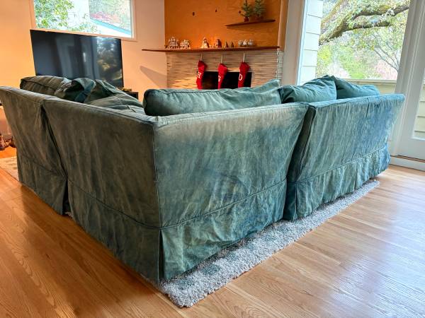 Extremely comfortable sectional originally purchased from Macy’s (Concepts Modern) in the early 2000s. Solid, well-made frame with plush feather-filled cushions that have kept their shape over time.