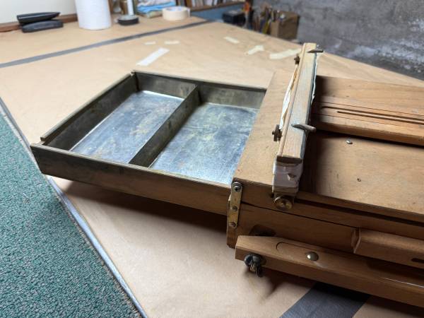 Lovely lovingly used Jullian french portable plein air painting easel. The easel itself is in excellent condition. There is the faintest musty smell from being stored in a basement for many years. We have been airing it out since late July. That is a big reason the price is so low! Also because we are moving!