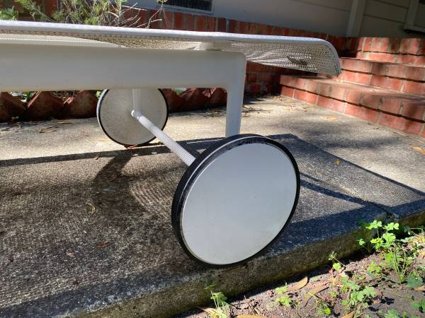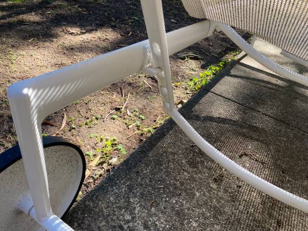 Features weather-resistant powder-coated finish and breathable woven mesh.