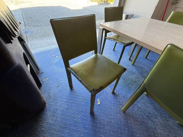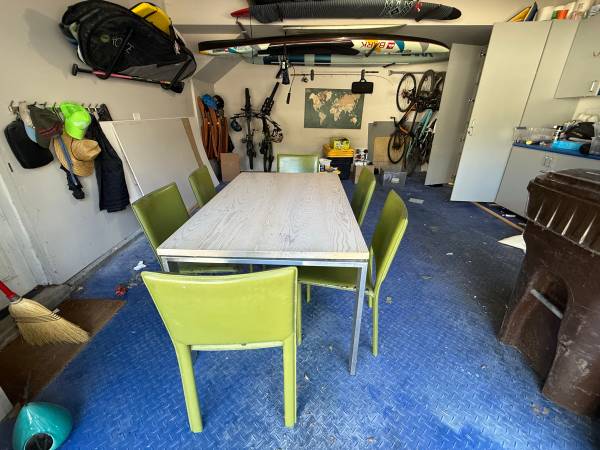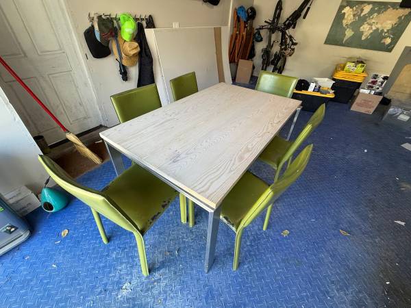 We're getting rid of our old dining room table along with six green chairs. The table is nice, some sanding and varnish could make it really nice. The chairs are pretty tattered but great for sitting. I'd love to get rid of them all together. Both are free or I can deliver for $100 (in Marin) if you're willing to help me unload it on your end, $200 if I have to grab a buddy to help me out. Thanks,--Matt
