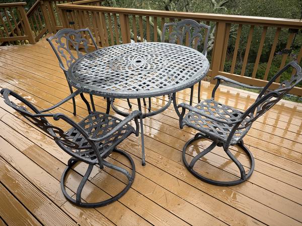 This is a table and chair set made of high quality cast aluminum - about 10 years old now and originally around about $1,000. The pieces are in very good shape, structurally perfect, but the chairs...