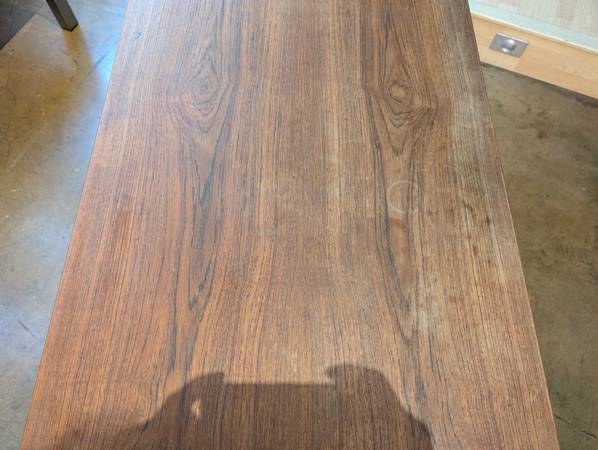 The top surface of the desk has some wear, some fading, and some ring marks consistent with use. Perfectly usable as is, but also ripe for refinishing. I've tried to take photos of the top from multiple directions to make sure you can see the surface.