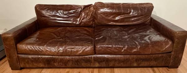 *** RH Restoration Hardware MAXWELL LEATHER 2-CUSHION SOFA - Down -...