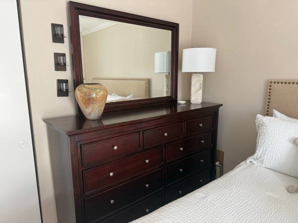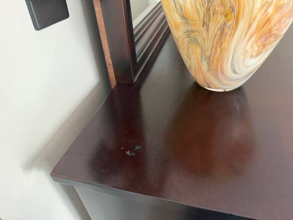 Ashley Furniture dresser. Only one mark on top left side. Holds a lot of clothes.