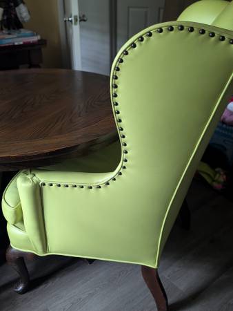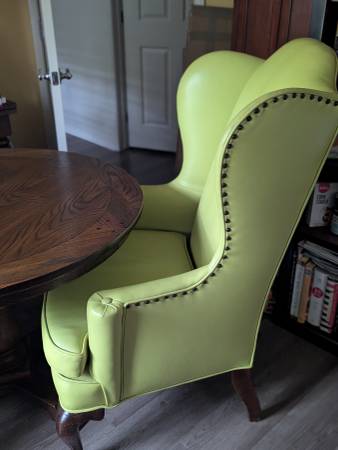 2 Italian leather wing chairs, lime green, excellent condition/like-new. Purchased at $3,000 each. Selling for $2,500 each.