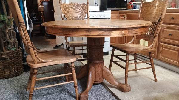 Refinished round oak dinning set in very good condition. I'm asking $500 if you are interested contact me. I might be able to work out a deal.
