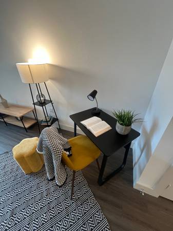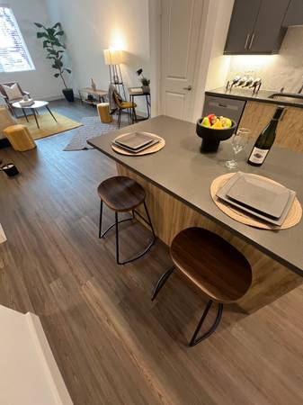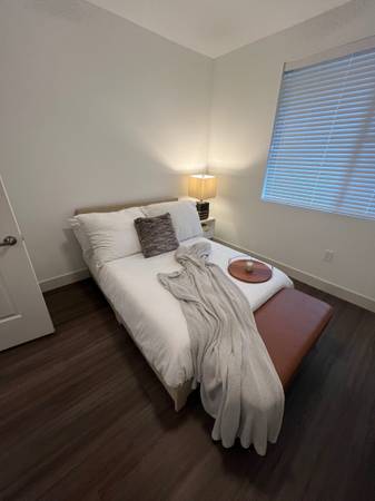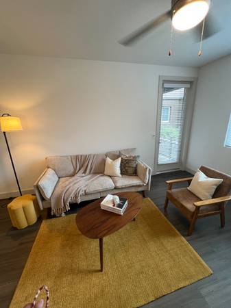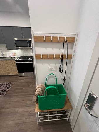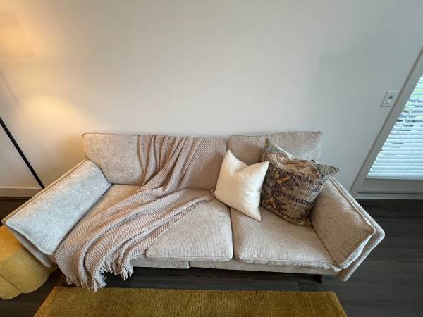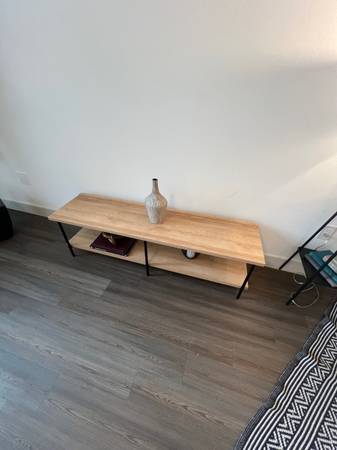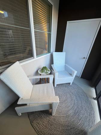 Furniture only used for staging. Pick up today or tomorrow. Bed w/mattress $200 Sofa $200 Chair $50 Desk $50 Barstools $20each Coat Rack $40 Patio chairs $30 each Tv console $50