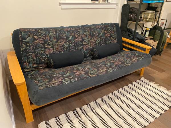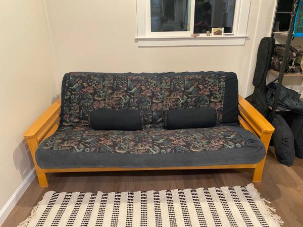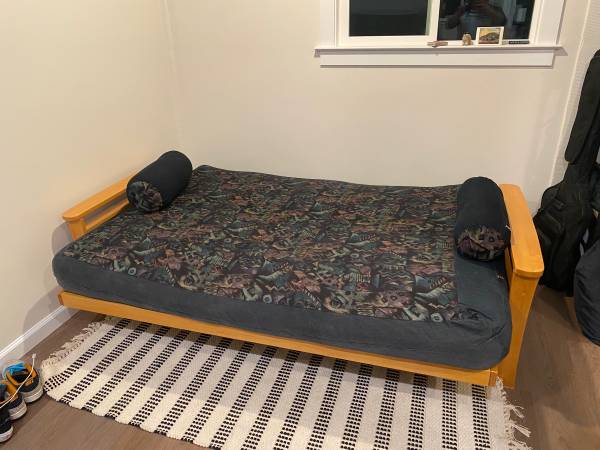 Selling a Bed Bath & Beyond Porch & Den Kern Full-size Futon Frame and Mattress couch/bed Set that’s in excellent condition.