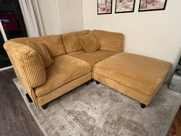 3 piece sectional Corduroy Measurements in photo Must pick up Serious offers only