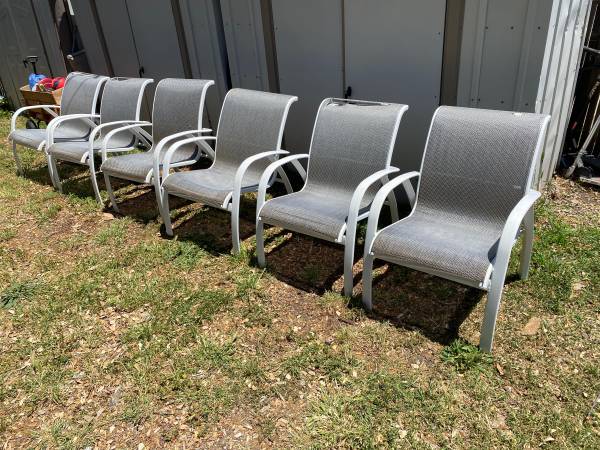 Selling six Tropitone Laguna Beach EZ Span Outdoor Dining Armchairs. The frames are in excellent condition but some of the chairs have a little fabric wear. 3 chairs have little to no wear or fabric...