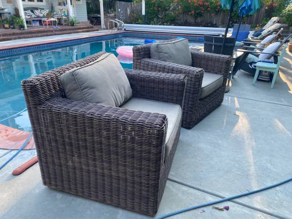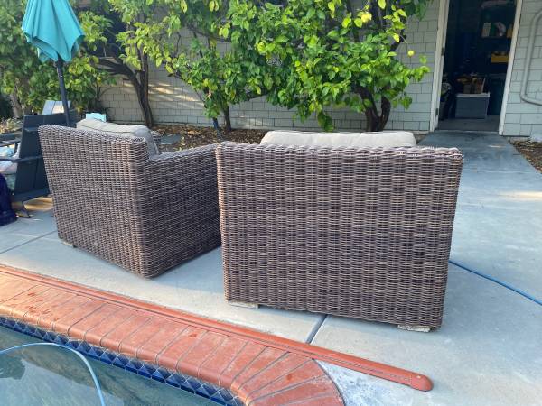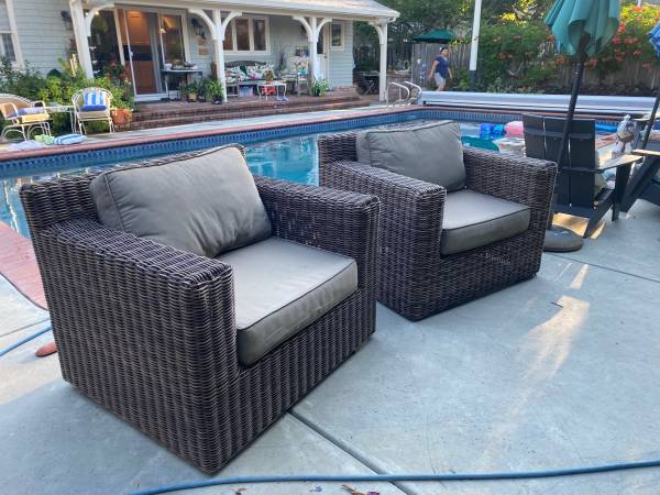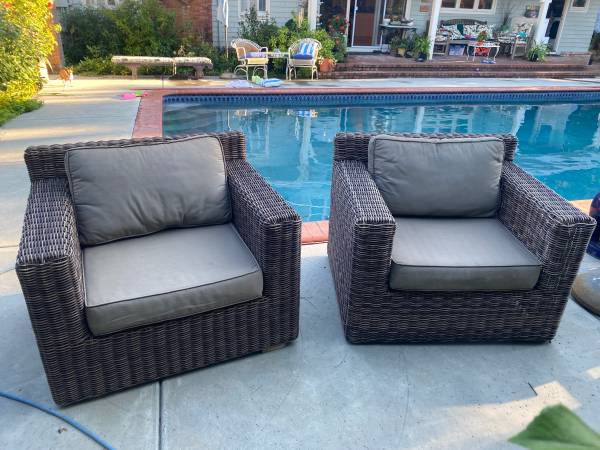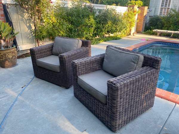 Selling two Ventana wicker wood outdoor patio chairs that are in excellent condition.