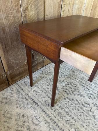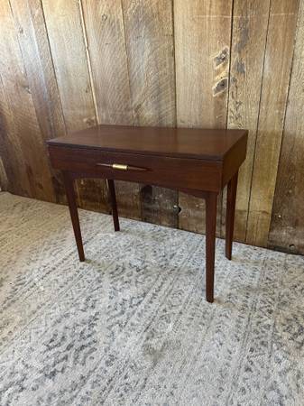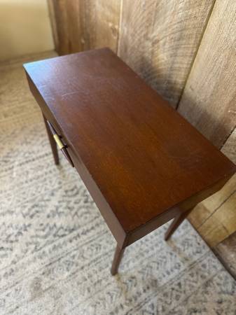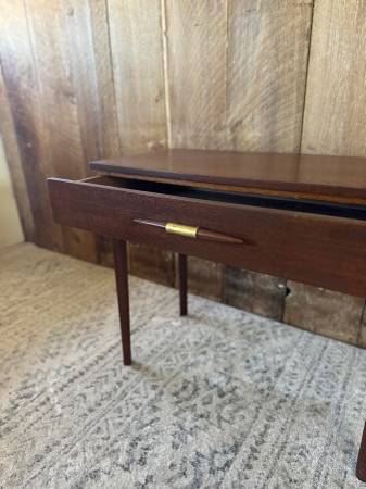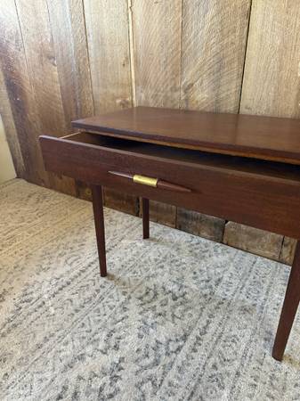 1960s Mid Century Modern Compact Desk w/ Drawer 35.5” W x 18” D x 30”H - Gorgeous MCM Brass Horn Handle Great condition Compact, clean lines, true vintage style and craftsmanship. Solid wood $350...