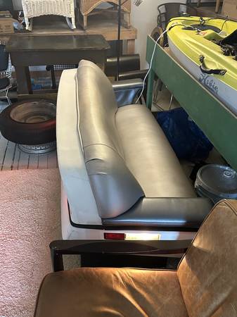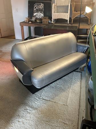 Plug in and all lights work! A real white corvette bumper with some paint transfer and a few scratches. A very durable gray vinyl with professionally done upholstery. A must have for a man cave, garage, automotive shop, waiting room, car dealership or your dang living room!