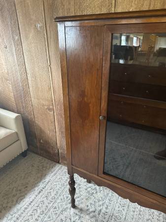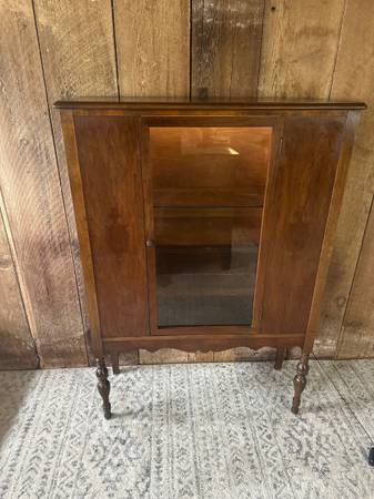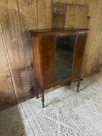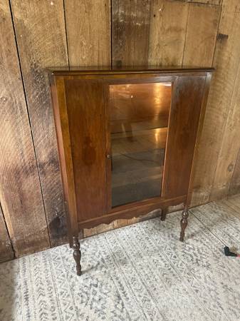 Antique 1920s Single Door Display Cabinet w/ 2 Shelves - Ornate Carved Legs / Lit with LED Light