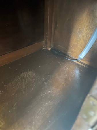 Hidden led plug in light strip in front inner panel for backlit display if desired. Has a scratch on front left door (pictured)