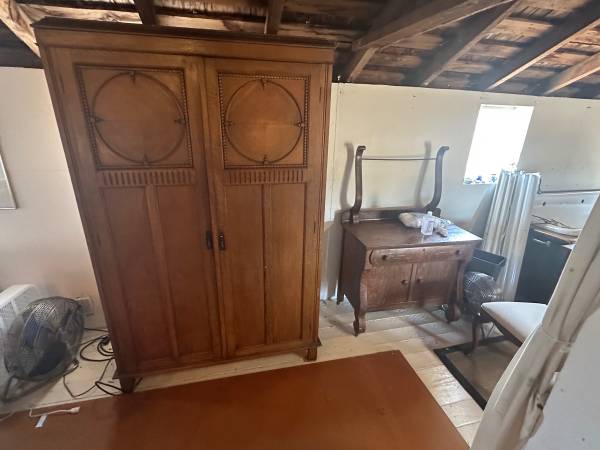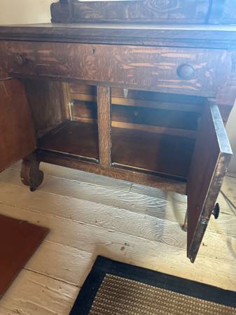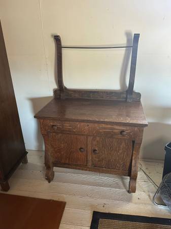 Antique Oak Washstand w/ Removable Towel Bar Holder Quarter Sawn/ Tiger Sideboard Cabinet 36”W 20”D 31” H True Antique. Towel Bar Rack is removable and could be used as a small dresser, hutch,...