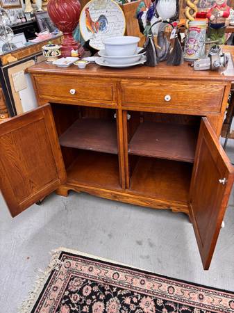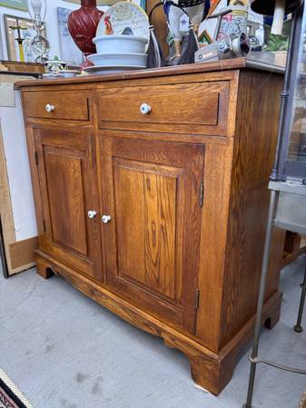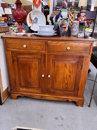 Very nice Vintage sideboard very sturdy with white country knobs. It has lots of storage. 41.5W x 18.5D x 36.5H