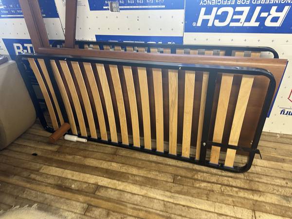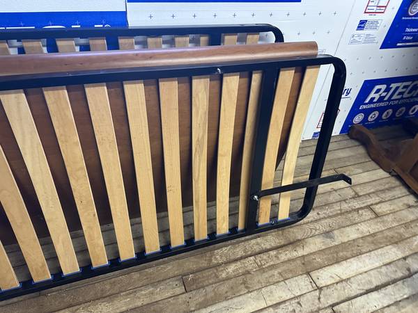 Includes matching side rails and a full slat platform base, so no box spring is required. The slat system sits in a sturdy black metal frame with flexible wood slats designed for comfort, support, and longevity.