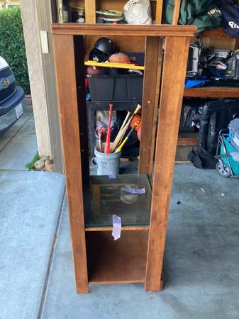 Media rack, credenza ,AV rack, solid wood, adjustable glass shelves. Excellent condition. lightweight easy to move.